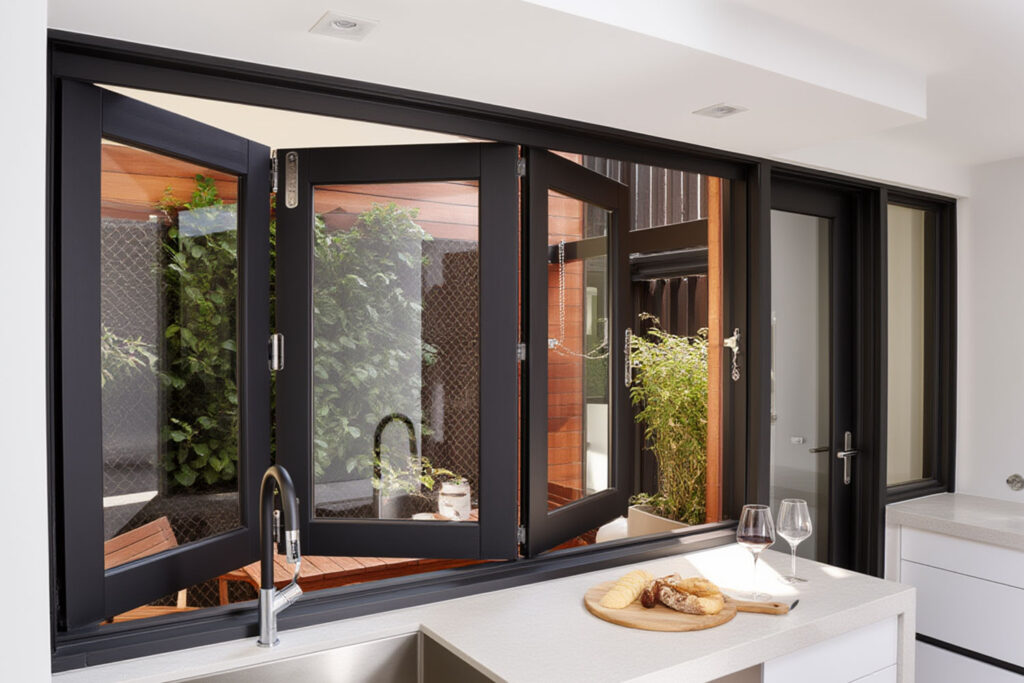 Slide & Fold Windows are modern windows that open by sliding and folding panels to one side, creating a wide opening. They save space, allow better airflow and natural light, and offer a stylish, low-maintenance solution for homes and commercial spaces.